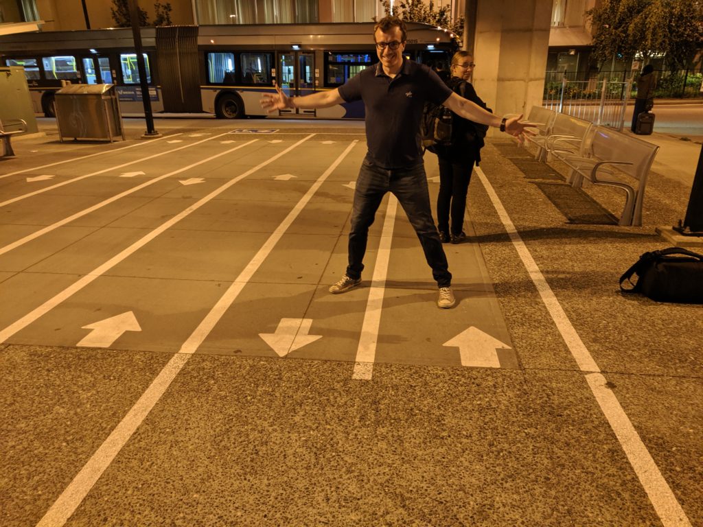 Nein, das ist nicht die Warteschlange für die neue Achterbahn im Heidepark, sondern eine ganz normale Bushaltestelle in Vancouver. Ja, die Leute stehen wirklich in einer geordneten Schlange für den Bus an. Dort kann man ganz einfach seine Kreditkarte beim Einsteigen als Fahrkarte nutzen kann, indem man sie über ein Kartenlesegerät “swipt” . Beste Story: Ein ebenfalls wartender Fahrgast verlässt die Warteschlange und wechselt die Straßenseite, um uns nicht mit seinem Zigarettenqualm zu belästigen. Fast so wie in Berlin.
